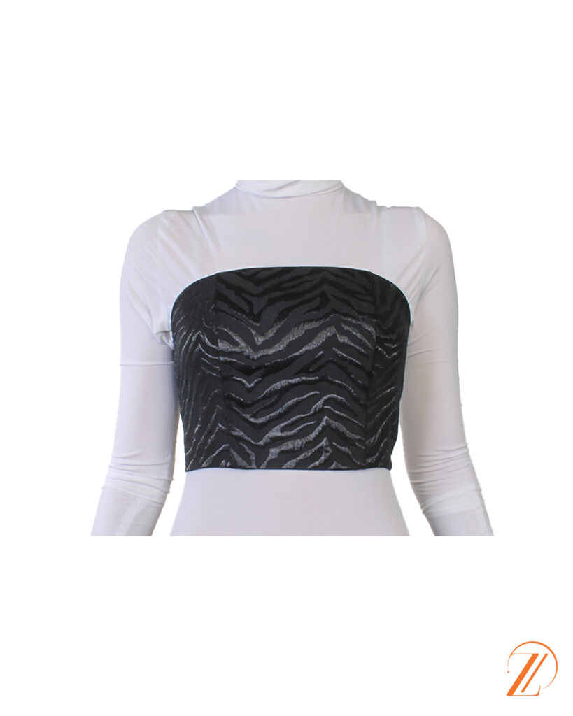 تاپ کشی ژوانسه دارای دو عدد سگک ضد حساسیت در بالا و پایین کراپ می باشد که به زیبایی کار افزوده