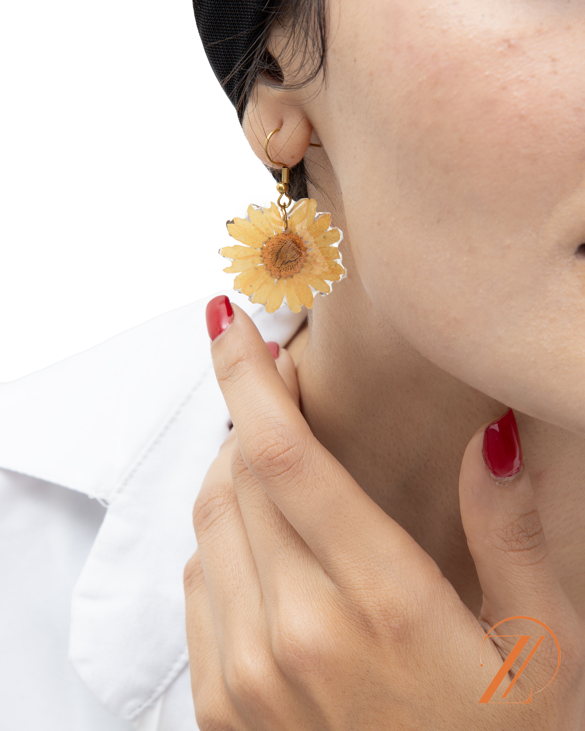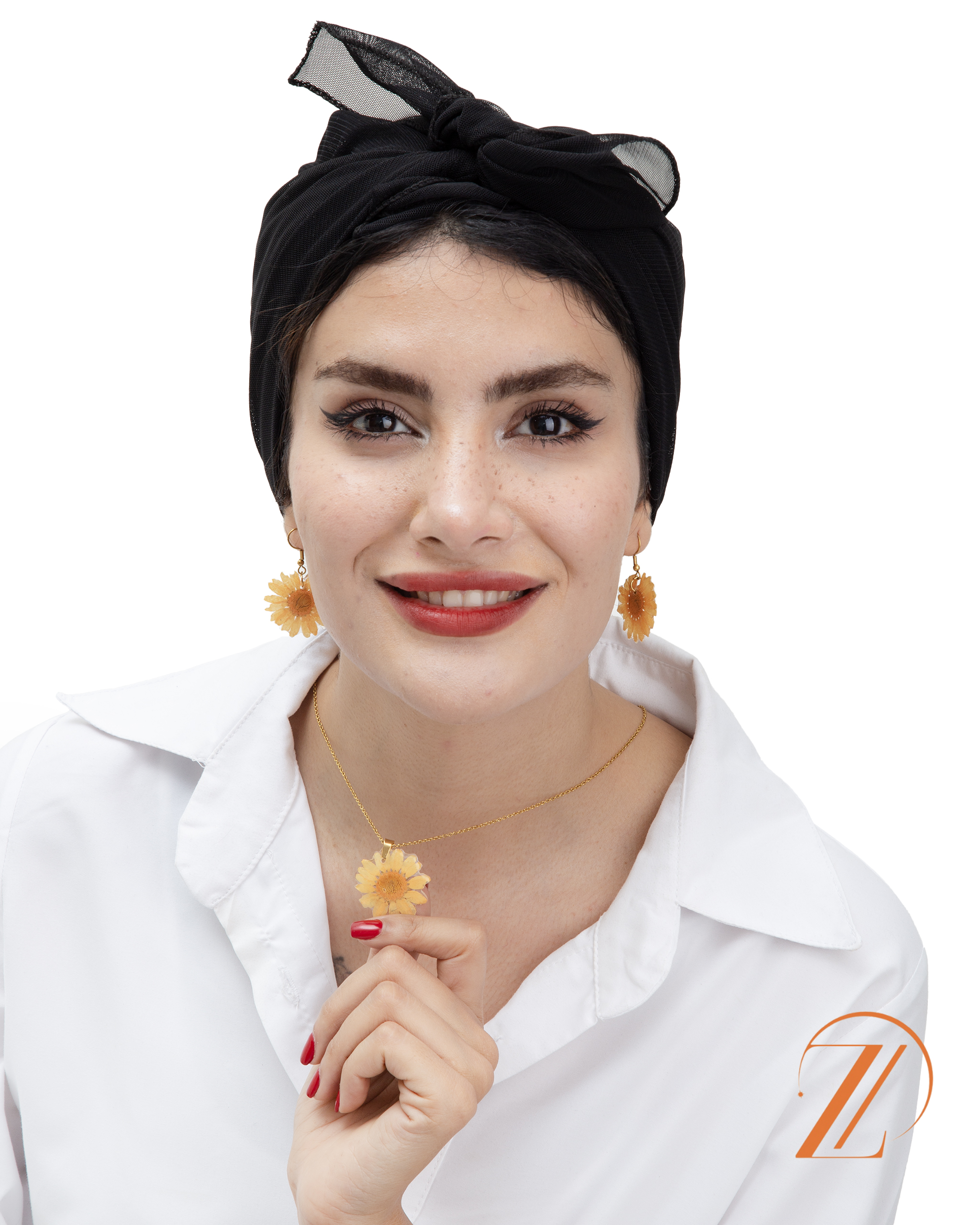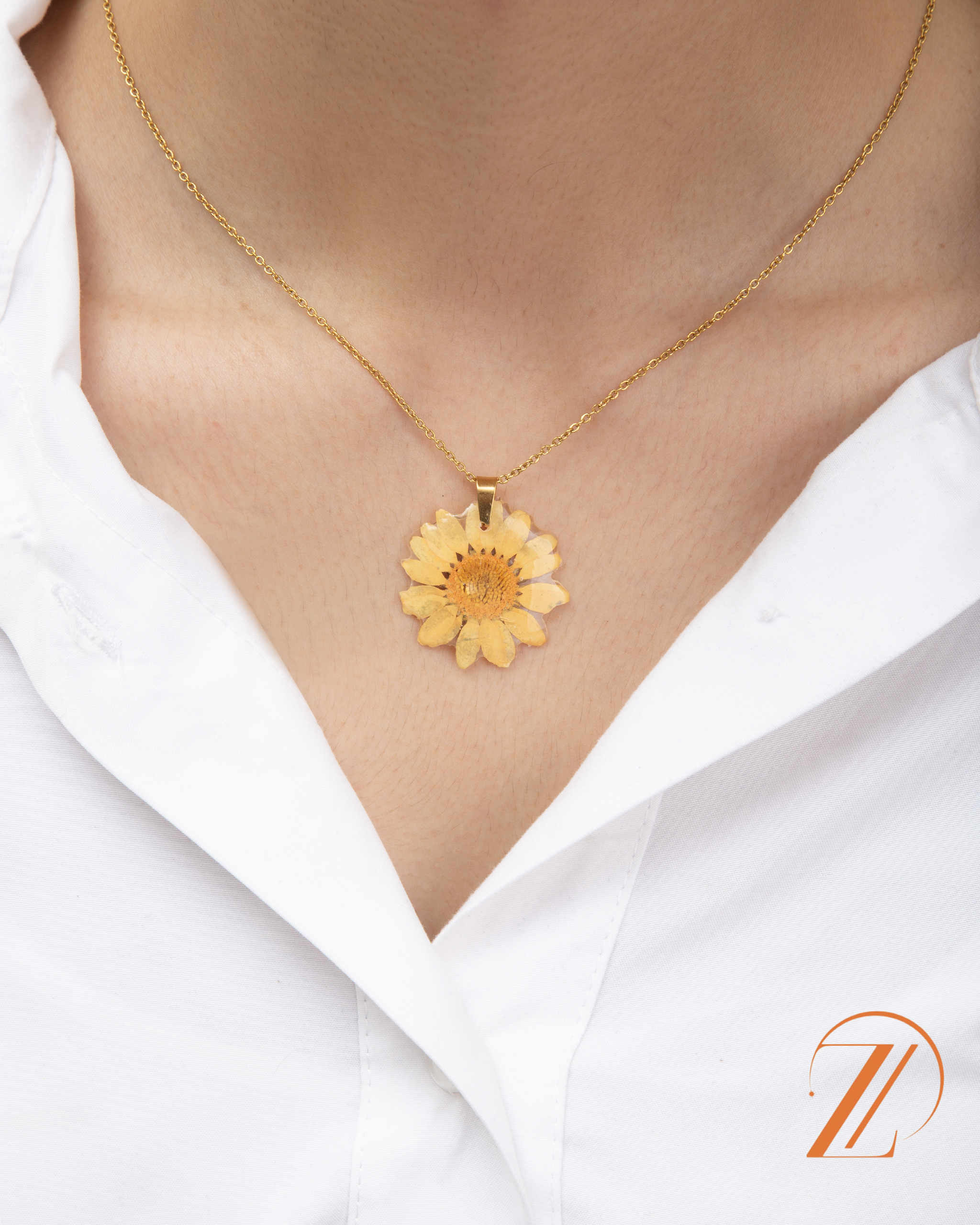نیم ست گردنبند گوشواره گل خشک طبیعی بابونه کاور شده با رزین