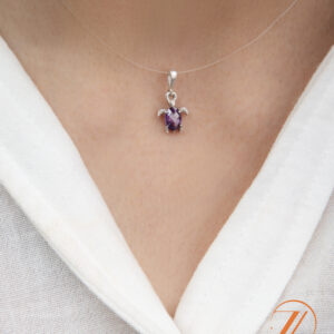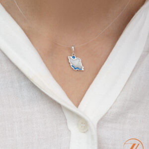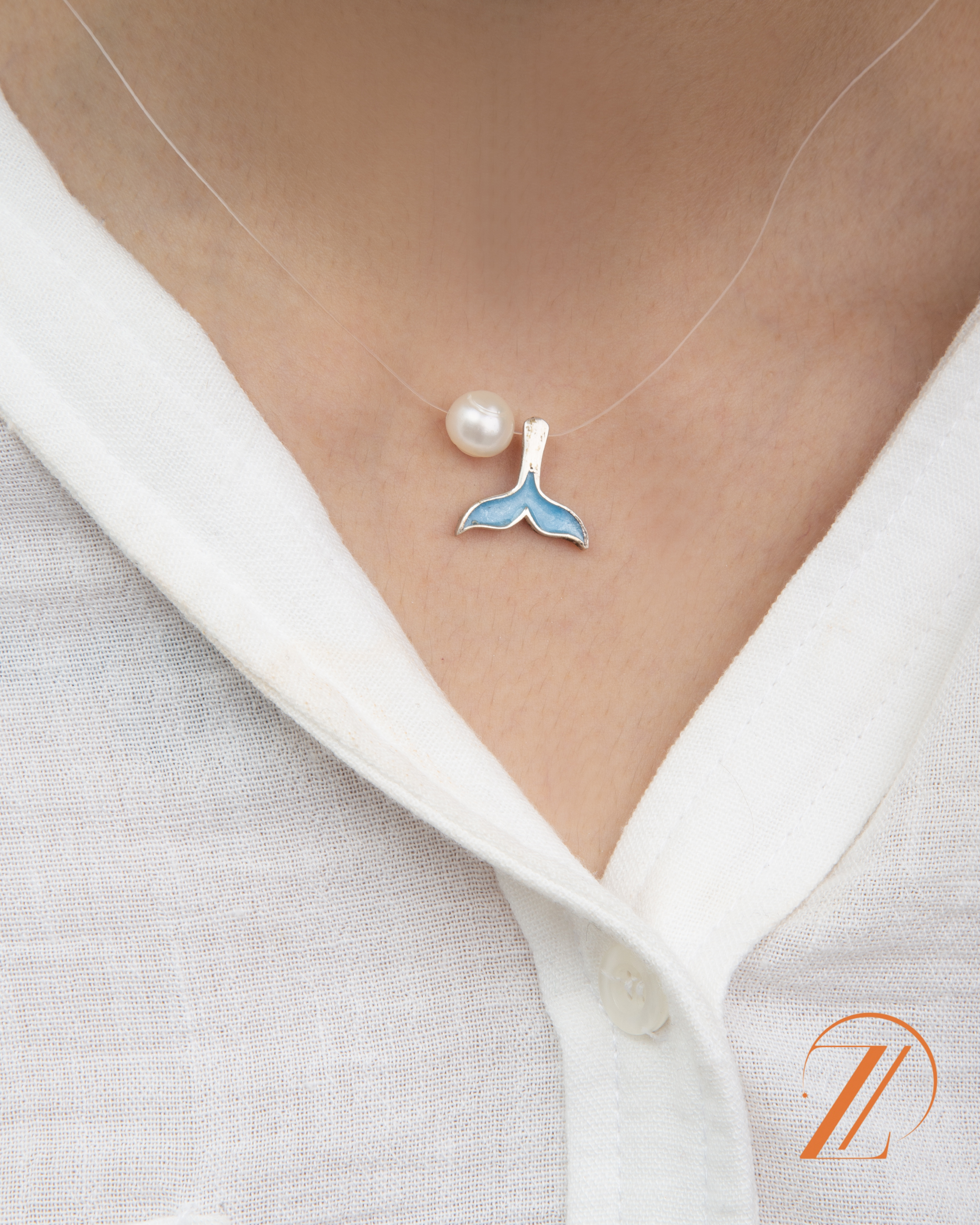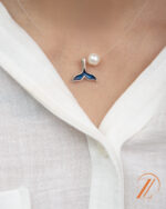 گردنبند آویز دم وال نقره و مروارید اصل پرورشی با مینای دو رنگ دو طرفه